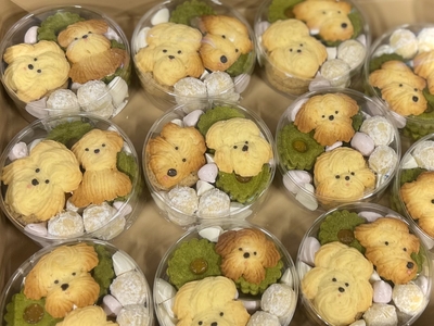クリアBOXに可愛らしいクッキーを詰めてリボンをかけました。
